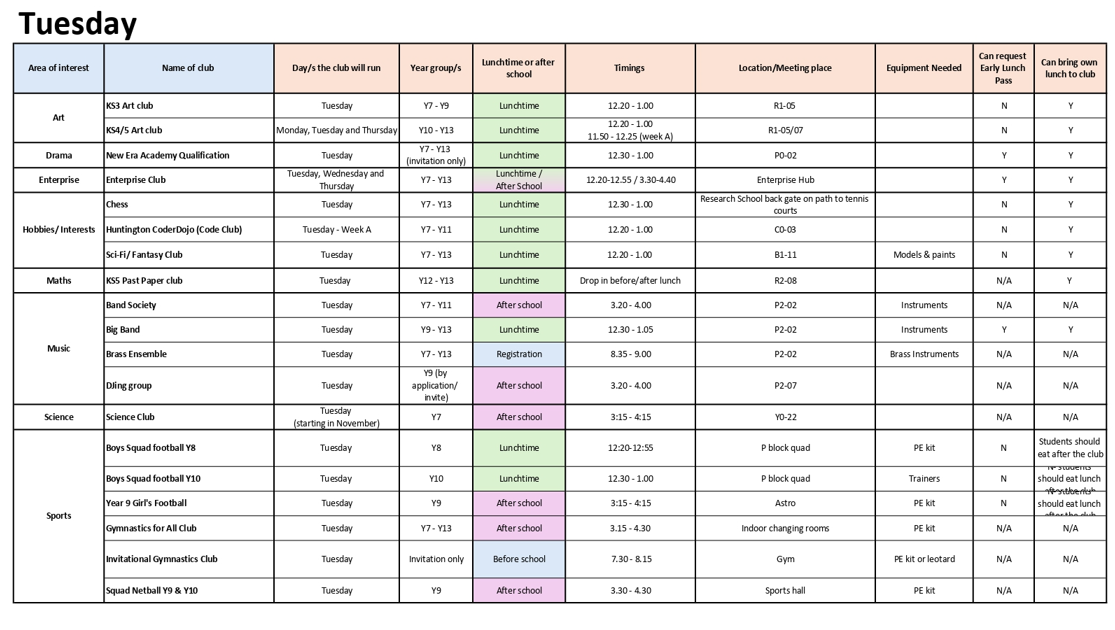 At Huntington School we are working to create a culture where all students are keen to engage with an extra-curricular programme that is broad and inclusive.